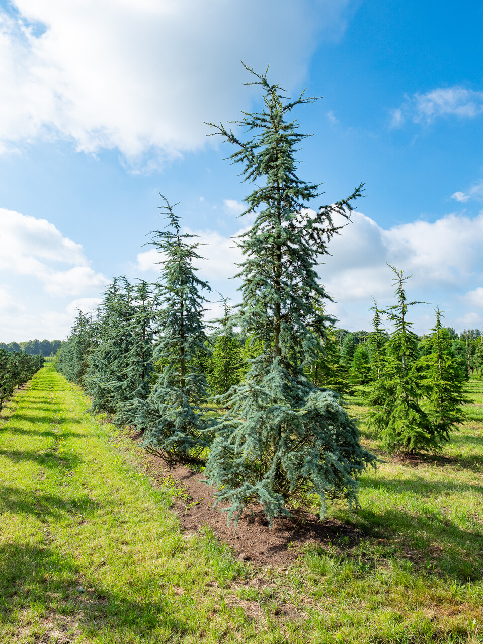 Een boom die in alle delen op C. libani subsp. atlantica lijkt maar zich onderscheidt door de intens blauwgrijze kleur van de naalden. De stam is eerst nog grijs en glad maar wordt bij oude bomen ruwer. Later in kleine plaatjes loslatend waardoor de roodbruine bast zichtbaar wordt. De vertakking is vrij los maar meer gesloten dan bij C. libani subsp. atlantica. Alle zijtakken zijn iets schuin omhoog groeiend. De twijgen zijn eerst nog grijsgroen tot grijsbruin maar worden in het tweede jaar grijs. De naalden zitten in bundels van 20 - 40 bijeen en zijn 2 - 2,5 cm lang. Vooral aan jonge scheuten zijn de naalden opvallend grijsblauw. In de herfst verschijnen de opstaande kegels. Jonge kegels zijn groen maar kleuren later paarsbruin tot bruin. Deze ceder verlangt veel zon en kan goed tegen luchtvervuiling. Cedrus libani 'Glauca' groeit uit tot een forse boom die als solitair in grote parken kan worden toegepast. De boom wordt nog veel onder zijn oude naam C. atlantica 'Glauca' verhandeld.