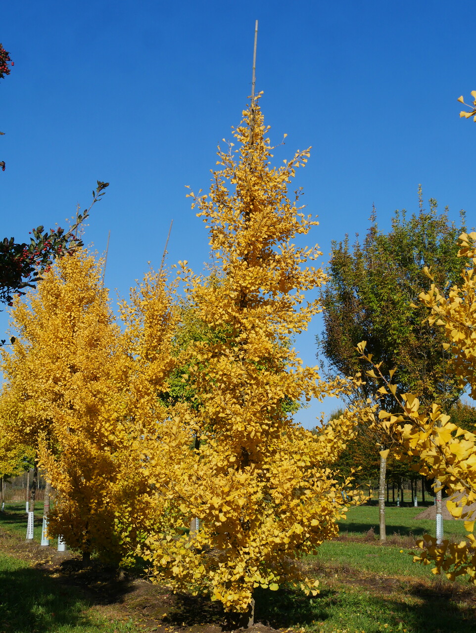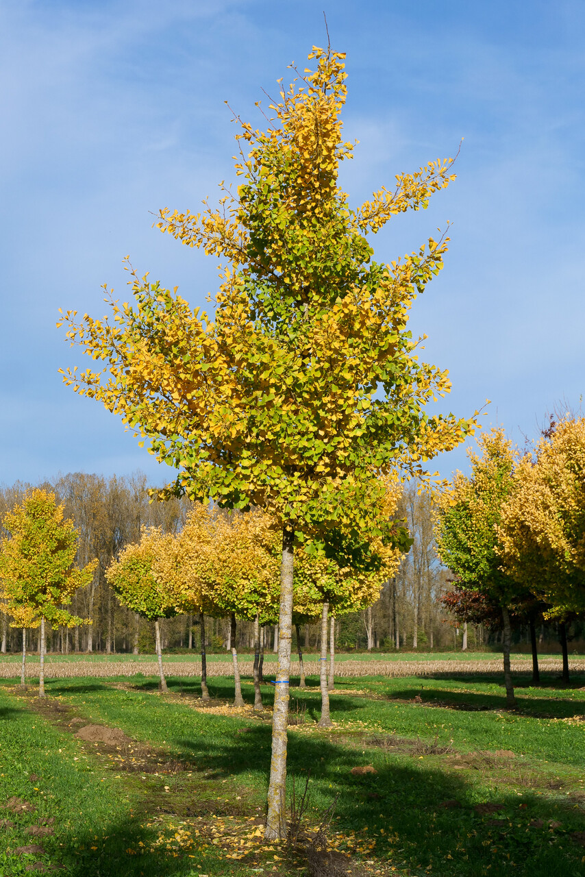 Een Amerikaanse selectie met een gelijkmatige groeiwijze, eerst smal piramidaal, later breed piramidaal. De hoofdstam groeit recht en de vertakking is open. Hoogte 15 - 25 m. Breedte tot circa 15 m. Vooral op jonge leeftijd langzaam groeiend. Het waaiervormige blad en de bloemknoppen staan op kortloten. De bladeren staan in bundels van 3 - 5 bijeen en hebben een ingesneden top. Extra sierwaarde is de prachtige goudgele herfstverkleuring waarop 'Autumn Gold' mede werd geselecteerd. Het is een mannelijk selectie zonder vruchten en daardoor geschikt als laan- en straatboom. Verlangt een lichte standplaats en verdraagt hitte goed. Winterhardheidszone: 5a