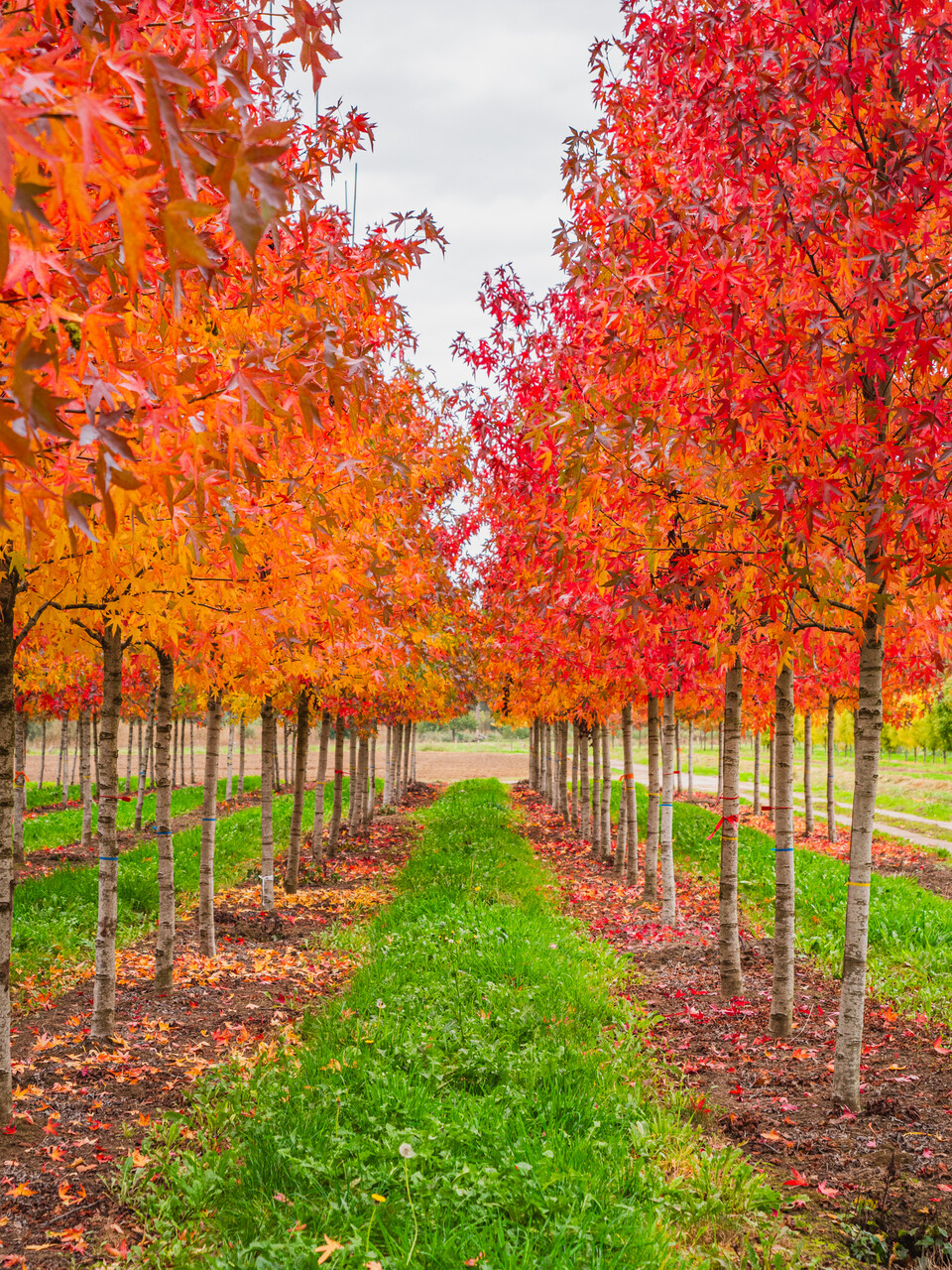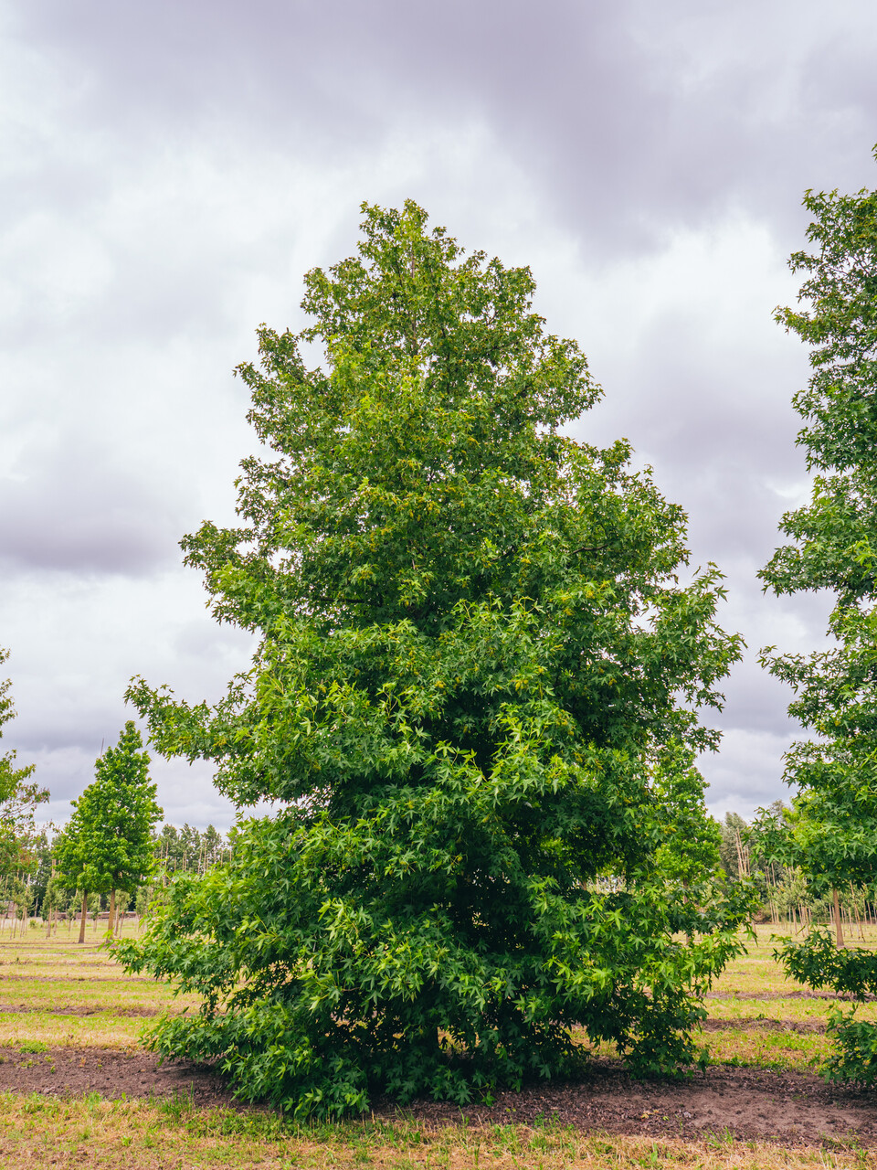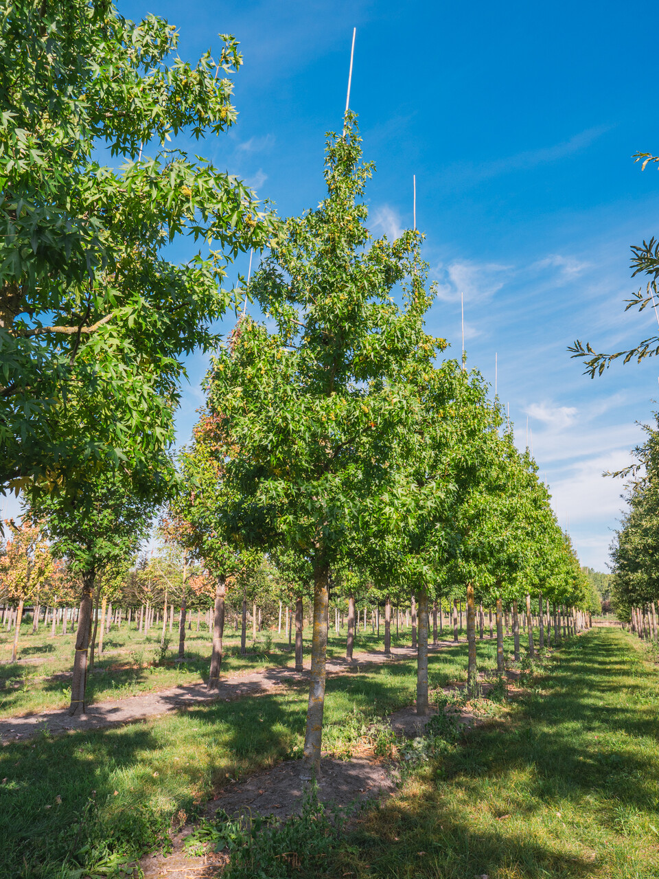 Deze Engelse selectie is zeer goed bestand tegen het onvoorspelbare klimaat van Noord- en West-Europa. Heeft geen problemen met kou en extreme regenval. De kroon groeit aanvankelijk smal met een doorgaande rechte stam. Op latere leeftijd gaan de takken meer afstaan zodat de kroon breed piramidaal wordt. Hoogte 12 - 15 m. Oudere takken krijgen grijze kurklijsten. Het 5 (zelden 7)-lobbige blad is diep ingesneden en langer dan bij de soort. De bladrand is sterk getand. De herfstkleur is abrikooskleurig, oranje tot oranjerood. Op een vochtige standplaats verkleurt het intenser. Na de onopvallende bloei verschijnen lang aanblijvende doosvruchten. Winterhardheidszone: 5b