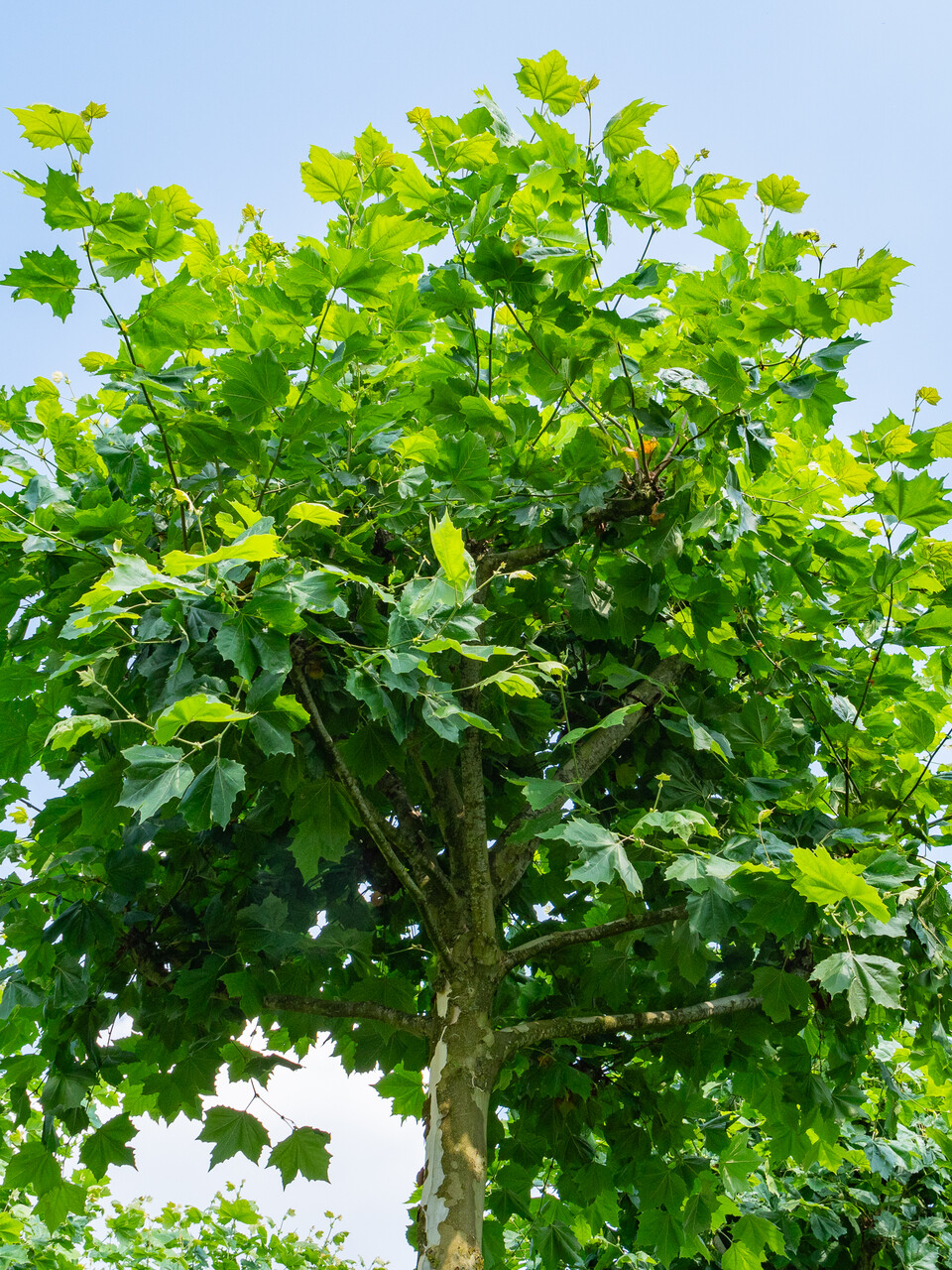 Snelgroeiende boom met een lange rechte stam. Kenmerkend is de afschilferende bast met een lichtgroene tot geelgroene ondergrond en grijsgroene, donkergroene tot bruine loslatende delen. Het brede handlobbige blad heeft 3 - 5 spits getande lobben en is aan de onderzijde licht behaard. In de herfst kleurt het bruingeel. Afgevallen blad verteert slecht en blijft zodoende lang rond de boom liggen. De bolvormige bloeiwijzen hangen in paren (1 - 3) aan lange stelen, waaraan ook de stekelige vruchten verschijnen. Deze blijven tot ver in de winter in de boom hangen. Plataan verdraagt verharding uitermate goed maar oppervlakkige wortels kunnen verharding opdrukken. Verdraagt snoei, zelfs tot in het oude hout, uitermate goed. Bij jonge aanplant is het belangrijk een boompaal te plaatsen. Jonge takken zijn breukgevoelig en zeewind wordt slecht verdragen. De zaden bij Platanus x acerifolia zitten gerangschikt in bolvormige vruchten. Deze blijven vaak in de boom hangen tot het moment dat de nieuwe bloeiwijze verschijnt.