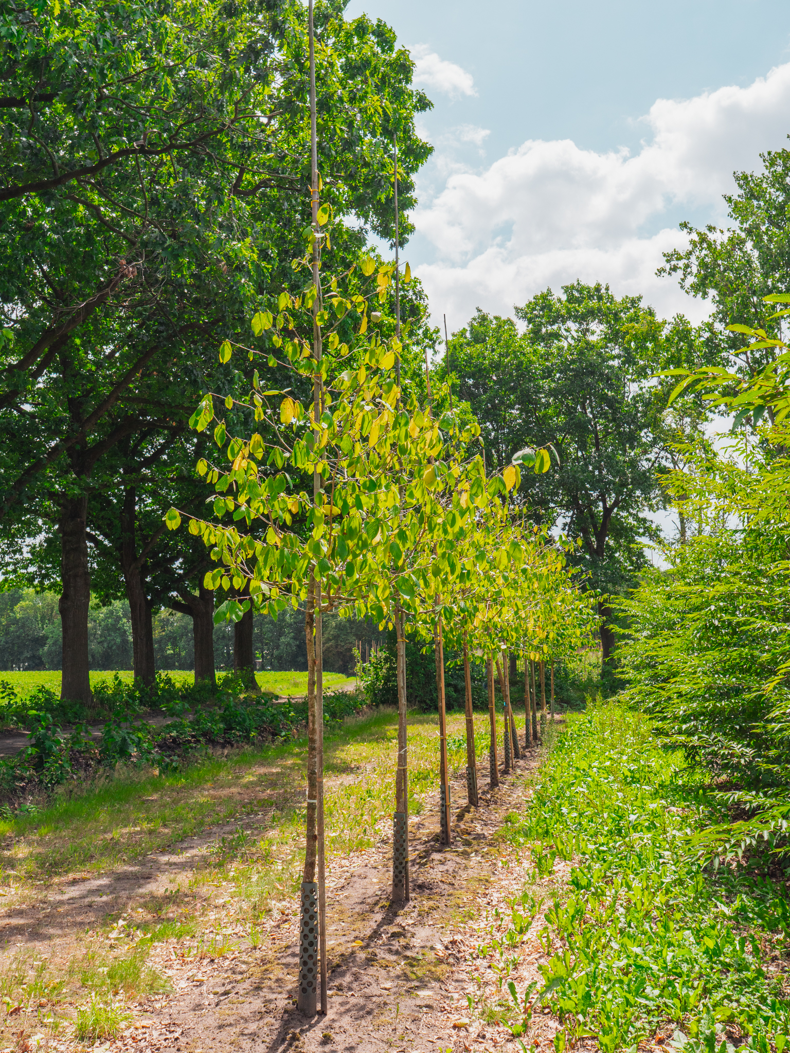 Als bomen niet direct geplant kunnen worden, is het belangrijk ze op de juiste manier op te slaan om uitdroging te voorkomen. Bij korte opslag van één tot twee dagen volstaat het om de kluiten te bedekken met zeil of doek. Bij langere opslag of bij bomen met kale wortel is het noodzakelijk de kluiten te beschermen met een dikke laag stro of zand en ze vochtig te houden. Zorg ervoor dat de bomen bij warm weer voldoende water krijgen. Houd er rekening mee dat bomen uit de volle grond alleen tijdens de rustperiode verplant kunnen worden, omdat ze dan beter herstellen van het verplanten.