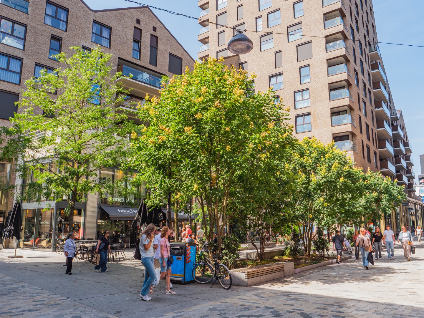 Op andere locaties in de binnenstad zijn aanvullende soorten toegepast, zoals Tilia, Sorbus 'Dodong', Cornus mas, Robinia en Acer saccharinum. De combinatie van soorten zorgt voor een gevarieerd stadsgroen dat ook op de langere termijn klimaatbestendig is en bijdraagt aan minder hittestress en betere waterinfiltratie.